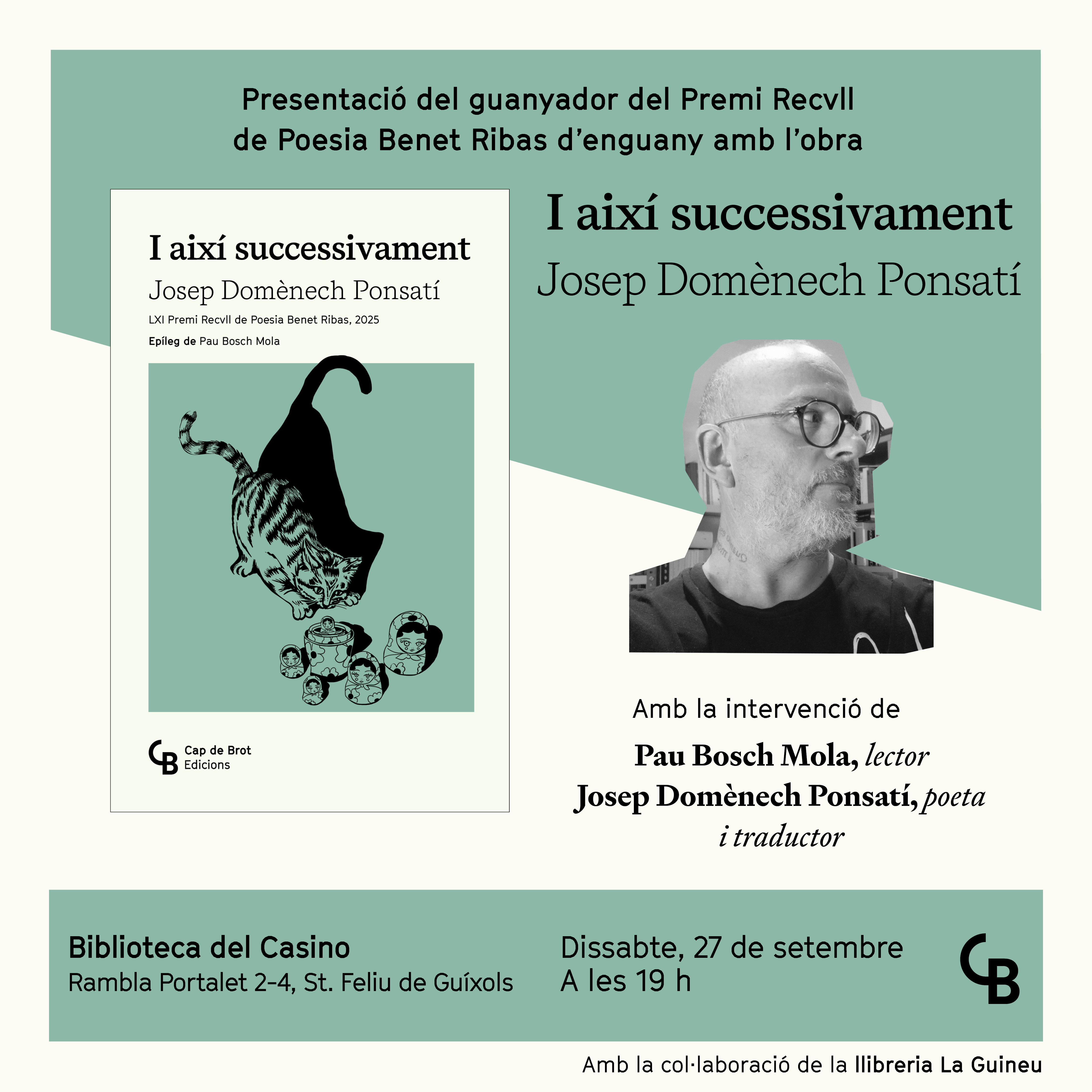Presentació del llibre I AIXà SUCCESSIVAMENT de Josep Domènech Ponsati CASINO DELS NOIS 27 SETEMBRE 2025 7 TARDA |